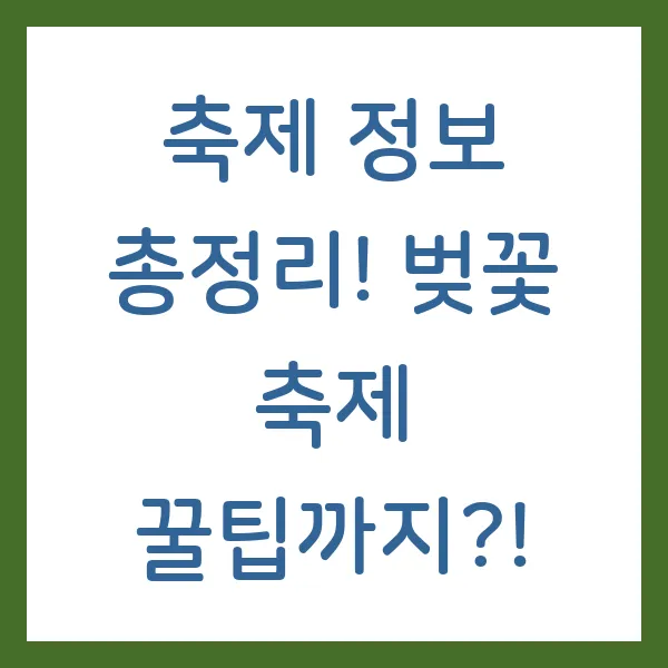 축제 정보 총정리! 벚꽃 축제 꿀팁까지?!