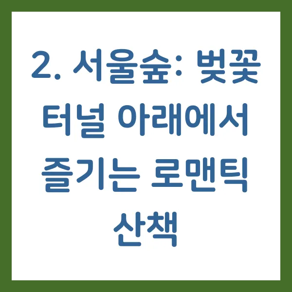2. 서울숲: 벚꽃 터널 아래에서 즐기는 로맨틱 산책