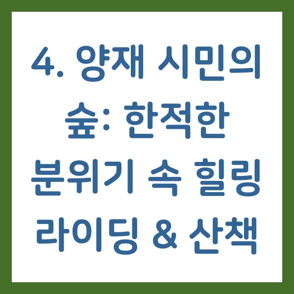 4. 양재 시민의 숲: 한적한 분위기 속 힐링 라이딩 & 산책